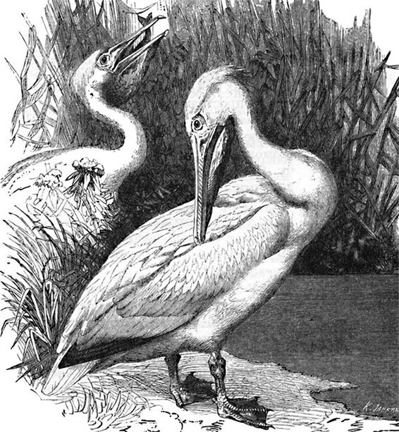 Магометанский обычай запрещает есть мясо пеликанов. Это находится в связи с любопытным преданием, существующим в среде арабов. Когда в Мекке строилась Кааба, воду приходилось доставлять издалека, и вскоре обнаружился недостаток в носильщиках; но Аллах не хотел, чтобы это препятствовало священной постройке, и послал тысячи пеликанов, которые приносили рабочим воду в своих горловых мешках.