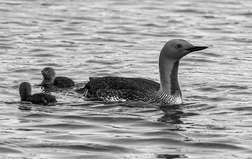 Краснозобая гагара с птенцами
