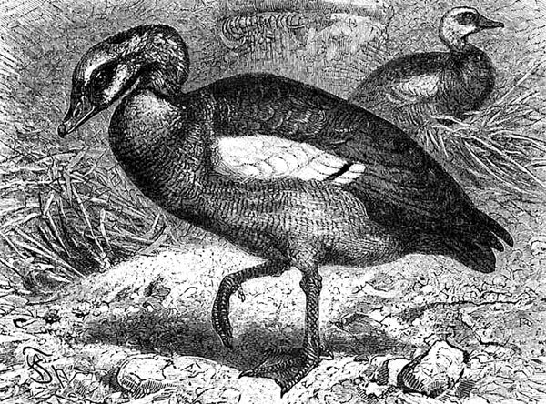 Утка может служить прототипом зубчатоклювой птицы, и подобное ей строение мы можем наблюдать у всякой птицы, принадлежащей к названному подотряду. Самый характерный признак утиных – это их клюв, служащий как бы ситом. Он редко бывает длиннее головы, обыкновенно прямой, широкий, на кончике образует широкий зубец, с боков имеет роговые зубчики; за исключением жестких краев, он покрыт мягкой, в высшей степени чувствительной кожицей. В связи с большим, мясистым, чувствительным языком клюв этот является превосходным цедильным аппаратом, который дает возможность отделять мельчайшие пищевые кусочки от окружающих их несъедобных веществ. Тело утиных плотное, несколько вытянутое, шея или средней длины, или очень длинная и тонкая; ноги средней высоты с 4 или 3 пальцами, соединенными перепонкой; крылья и хвост умеренные. Оперение очень обильное, густое и плотно прилегает к телу, а под ним всегда находится толстый слой пуха; окраска его хотя не роскошная, но все же, в большинстве случаев, довольно красивая.