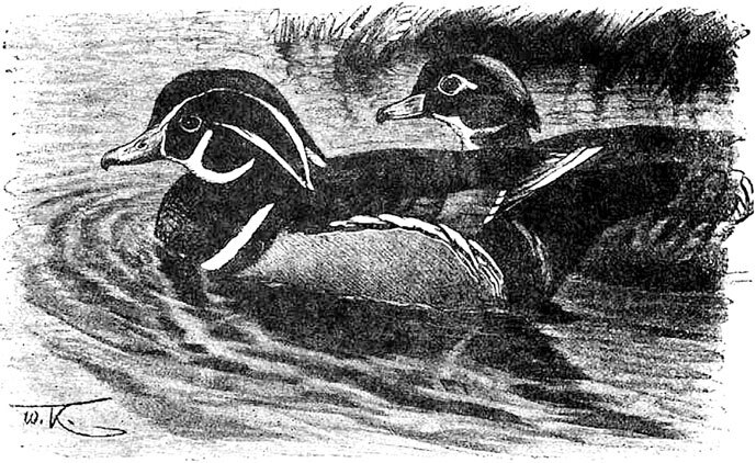 Между утками пальма первенства за красоту должна быть присуждена каролинской утке (Lampronessa sponsa), очень распространенной по всей С. Америке и разводящейся в Зап. Европе. Характерным отличием всего рода служит хохол, украшающий их большую голову, и роскошное, плотное, блестящее оперение. У каролинской утки хохол золотисто-зеленый, плечевые перья, большие маховые и рулевые – зелено-пурпурово-синие, задняя часть спины и верхние кроющие перья хвоста – черно-зеленые, середина груди и живот – белые, бока желтые с красивым, нежным узором.