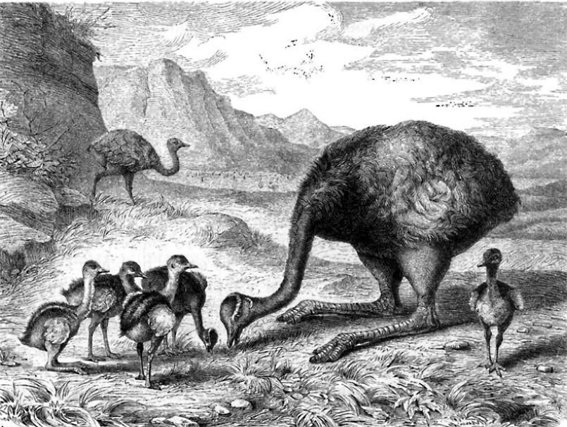 К подобным чудесным птицам принадлежат и короткокрылые, три отряда которых должны рассматриваться вместе, несмотря на незначительное родство между собой. Голова их небольшая, шея значительной длины, туловище огромное, клюв короткий и широкий, ноги чрезвычайно развиты, с длинными плюснами и двумя или тремя пальцами; крылья совершенно неразвиты и покрыты видоизменными, мягкими перьями. В скелете замечательно отсутствие грудного гребня и несоответственно короткие кости крыла.