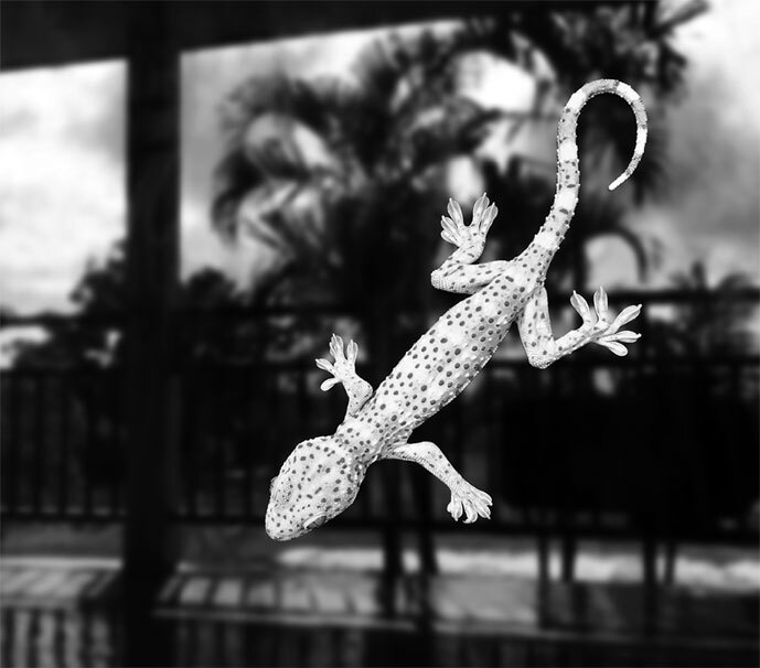 Геккон, сидящий на стеклянном окне