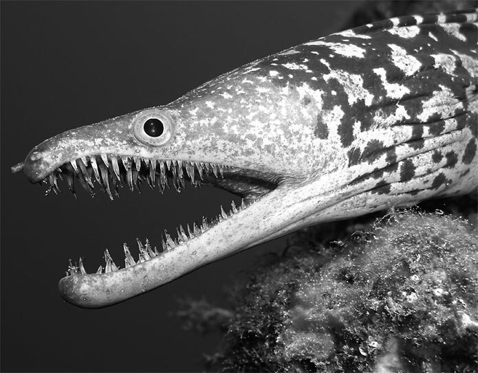 Пасть тигровой мурены оснащена внушительными зубами
