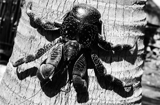 На Вест-Индских островах водится один наземный рак, называемый пальмовый вор (Birgus latro), который ночью прячется в норках, мягко устланных кокосовыми волокнами, а днем взбирается на кокосовые пальмы и поедает орехи.