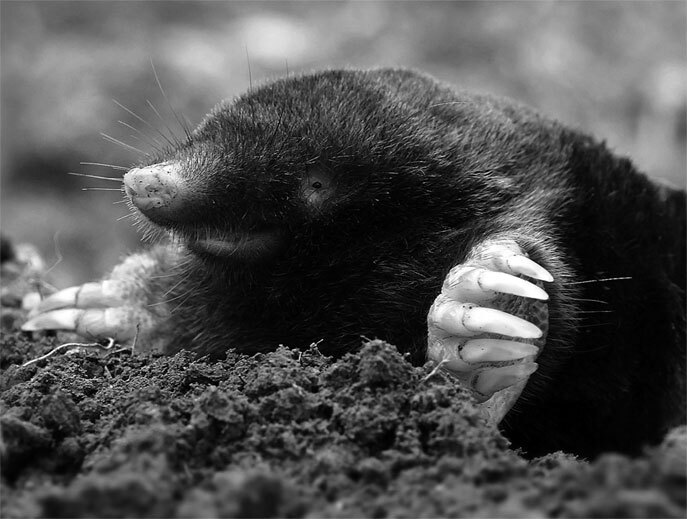 Крот прекрасно приспособлен к передвижению под землей