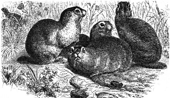 Водящиеся в Азии пищухи (Lagomys) отличаются от зайцев гораздо более короткими ушами, едва удлиненными задними ногами, невидимым снаружи зачатком хвоста и 5 коренными зубами (вместо 6) в каждом ряду. Наиболее известный вид – сеноставец (L. alpinus), по виду и величине напоминающий морскую свинку, только с более длинной и узкой головой. Жесткий, густой, короткий мех сверху рыжевато-желтый с черными крапинами, снизу – буровато-желтый. Водится на всей длинной цепи гор, окаймляющей с севера среднеазиатские плоские возвышенности, на высоте 1–4 тыс. м, а также на Камчатке. Предпочитает леса голым степям на возвышенностях, где его заменяет другой вид – оготона (L. ogotona). Жилищами пищух служат маленькие норы и трещины скал, где они живут обществами. Зимой они не подвергаются спячке. Характер их – смесь любопытства и боязливости; из любопытства они подпускают человека или собаку чуть не к самому носу, потом, скрывшись в норе с быстротой молнии, через минуту опять высовывают голову. Радде называет пищух деятельными, миролюбивыми и очень прилежными грызунами, которые собирают большие запасы сена, правильно складывают его в кучи до 18 см высоты и 30 в диаметре и иногда прикрывают широколистными растениями, чтобы защитить от дождя. Голос сеноставца похож на крик пестрого дятла; оготона же свистит по-мышиному. Третий вид, карликовая пищуха (L. pusillus), кричит перепелом.