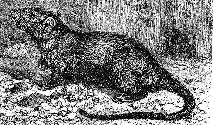 Животное, возбуждавшее такие гонения, была черная крыса (Mus rattus) (до 35 см в длину, причем 19 см приходятся на хвост, с пепельно-серым брюшком и светло-серыми лапками). Теперь она существует в Европе только в зоологических кабинетах да на негостеприимных берегах жалких Бретонских островов; да и в других частях света она теперь встречается в небольшом числе: ее всюду вытеснил и истребил другой вид – пасюк, серая крыса (до 42 см в длину, включая 18 см хвост (Mus decumanus), еще более прожорливая. Интересно знать время ее прибытия в Европу.
