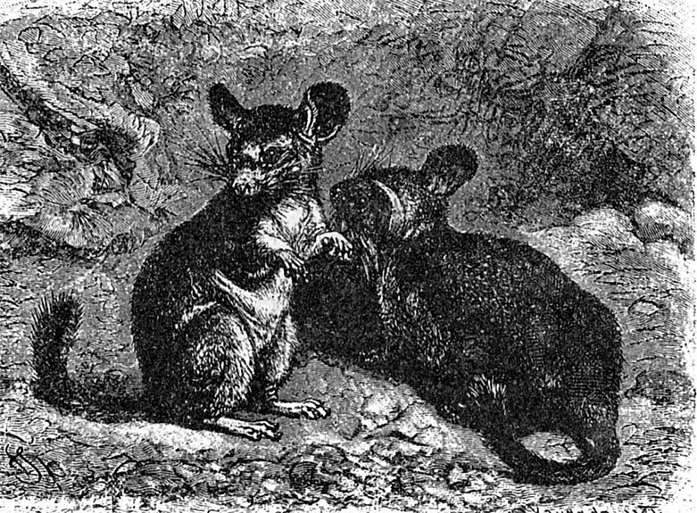 Вторую группу мышей образуют собственно мыши, животные всем настолько известные, что вряд ли нужно описывать их. Характерным признаком их, кроме острой, покрытой волосами мордочки с широкой, раздвоенной верхней губой, является длинный хвост, покрытый вместо шерсти четырехугольными и ромбическими чешуйками. Уже в обыденной жизни различают собственно мышей и крыс. Первые более красивы и миловидны, чем последние. Кроме того, крысы имеют около 200–300 чешуйчатых колен на хвосте, мыши же – только 120–180; у крыс ноги толстые, сильные, у мышей – тонкие, стройные. Наконец, и по образу жизни эти группы резко отличаются одна от другой.