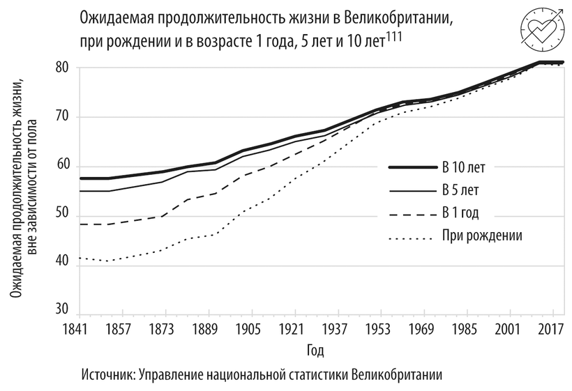 Надо признать, этот подход приносил свои плоды. Тысячу лет назад средняя продолжительность жизни в Европе составляла от 20 до 30 лет, так как многие дети погибали в младенчестве от болезней, таких как холера и дизентерия, которые сейчас легко поддаются профилактике103. К середине XIX века ожидаемая продолжительность жизни в Великобритании и США выросла примерно до 40 лет104. В 2023 году в развитых странах этот показатель составлял более 80 лет105. Это означает, что за прошедшую тысячу лет мы почти втрое увеличили продолжительности жизни, за последние два века – почти вдвое. Такой прогресс стал возможен благодаря тому, что мы разработали способы защититься от патогенов – бактерий и вирусов, которые могут проникать в наши тела извне – и научились с ними бороться.
