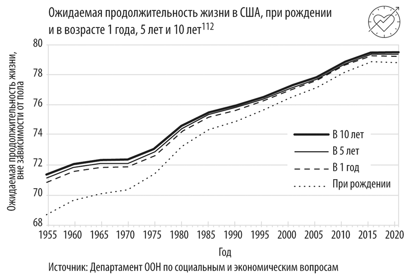 К сожалению, приходится признать, что в этой сфере все плоды, до которых было легко дотянуться, уже сорваны. Оставшиеся нерешенными проблемы, вызывающие болезни и недомогание, уходят корнями в строение нашего тела. По мере того как нарушается работа клеток, а ткани разрушаются, начинают развиваться онкологические заболевания, атеросклероз, диабет и болезнь Альцгеймера. В какой-то степени мы можем снизить риски, если будем придерживаться здорового образа жизни, правильно питаться, восполнять дефициты важных веществ – я называю это первым мостом к радикальному продлению жизни 106. Однако такие меры только оттягивают неизбежное. Именно поэтому рост продолжительности жизни даже в самых развитых странах замедлился начиная с середины XX века. Например, с 1880 по 1900 год ожидаемая продолжительность жизни в США увеличилась с 39 до 49 лет. А вот с 1980-го по 2000-й – после того как в медицине пришло время переключить внимание с инфекционных болезней на хронические и дегенеративные заболевания – всего лишь с 74 до 76 лет107.