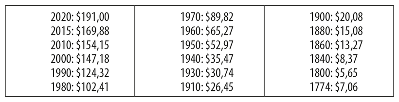 Средний дневной доход на человека в соединенных штатах (в ценах 2023 года), в разбивке по годам134