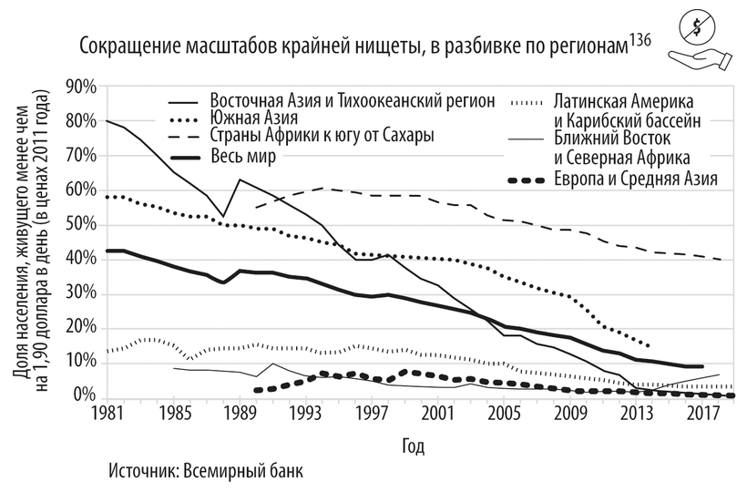 С 1990 по 2013 год количество бедных в этом регионе сократилось на целых 95 %, при том что население региона за тот же период выросло с 1,6 миллиарда до 2 миллиардов человек117.