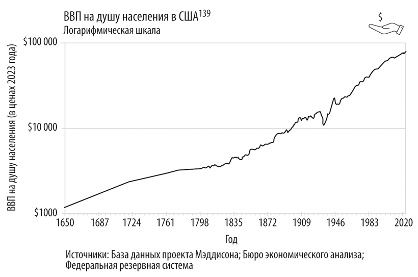 Каждое из рассмотренных технических достижений само по себе приносит пользу, но именно в совокупности, дополняя и усиливая эффекты друг друга, они становятся основой для по-настоящему фундаментальных преобразований. На больших отрезках времени достаточно надежным, хоть и не исчерпывающим критерием прогресса является экономическое благополучие.