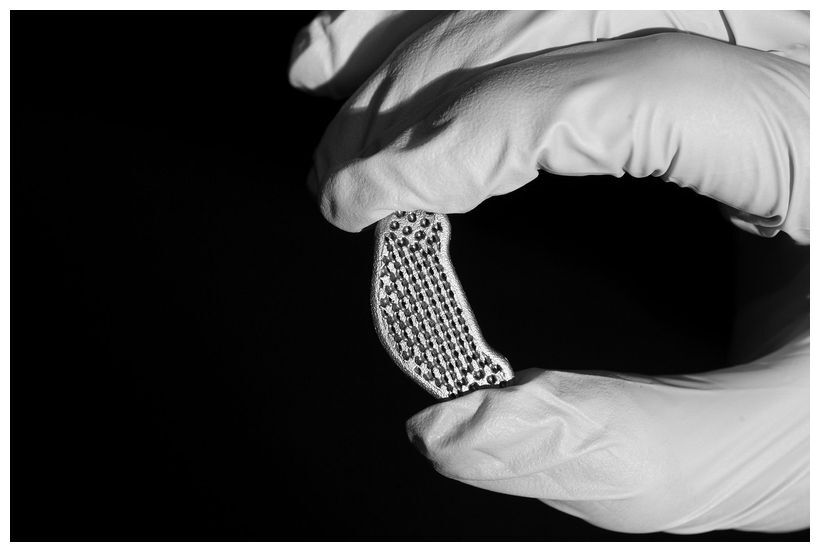 Напечатанный на 3D-принтере титановый межпозвонковый диск, который может быть имплантирован пациентам с повреждениями или заболеваниями позвоночника. Фото: Майкл Дж. Эрмарт, 2015. Предоставлено Управлением по санитарному надзору за качеством пищевых продуктов и медикаментов (FDA)