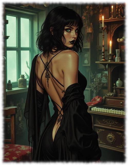 Я толкнул дверь вперед и ступил внутрь. Меня обдало теплом и запахом лечебных трав, а спиной ко мне, согнувшись над широким дубовым столом, что-то стряпала Ве́сна. Она была одета в черное платье до пола с до неприличия широким вырезом во всю спину, по которой бежали мелкие искорки маны.