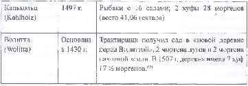 Кроме названных немецких деревень, возникли небольшие немецкие арендные деревни размером менее 20 хуф; они, пожалуй, как Вилькнитт и Воляу, произошли от прусских поселений.