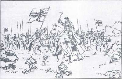 Поход в Литву, 1391 г. Ещё в конце 13 90 г. в Пруссию стали прибывать значительные отряды военных гостей. Рыцарей из Германии возглавил знатный маркграф Майсена Фридрих IV, к нему примкнули саксонские графы Шварцбург и Гляйхен, а также граф фон Плауэн — один из членов этого знатного рода всегда был представлен в Тевтонском ордене. Прибыли бароны и знатные дворяне из Франции, Англии и Шотландии, в том числе Генрих Ланкастер граф Дерби, с ним 50 (копей) знатных лордов и рыцарей и 60 лучников, герцог Томас Глочестерский, граф Майкл Стаффордский, лорд Томас Морлей маршал Ирландии, а французскими рыцарями командовал маршал Бусико. Перед походом военные гости сосредоточились в Кёнигсберге и ждали приказа о выступлении. Время ожидания для приехавших из многих районов Европы знатных персон было заполнено почти непрекращающимися праздниками. Совместная борьба против язычников отодвигала политические споры того времени на задний план (Столетняя война между королями Англии и Франции), освобождала от обязательств перед Родиной, сводила вместе друзей и врагов. Орден осознанно воздерживался от определённых позиций в больших политических спорах. Вежливо, но вполне определённо отклонялись требования сторон по вопросам политики. У противников совместные крестовые походы зачастую порождали чувство сословного товарищества. А оно, в свою очередь, способствовало смягчению военных действий на западе.