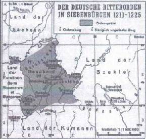 В 1210–1211 гг. Герман фон Зальца ведёт переговоры с венгерским королём Андрашем II, пригласившим орден для защиты границы Венгрии от кочевников (половцев-куманов). Половцы совершали разорительные набеги на южные владения короля. Из-за частых вторжений эта местность совершенно обезлюдела и не приносила королю никаких доходов. По завершении переговоров Андраш в мае 1211 г. передал ордену в лен небольшую, едва заселённую территорию Бужа 3urza, Бурценланд или Семиградье). "Мы, Андреас, король Венгрии, Долматии, Хорватии… передали господам рыцарям Святой Марии Иерусалима… землю под названием Бурценланд по ту сторону гор, против куманов, сейчас, правда, пустынную и незаселённую, для мирного проживания и вечного владения, для того, чтобы королевство расширилось через их деятельность… Далее мы уступили им половину в названном Бурценланде (если обнаружат на этой территории) найденного золота и серебра, удержав другую половину для фискуса. Далее мы уступили им полностью свободные рынки и рыночные налоги и дозволили строительство деревянных крепостей и городов для защиты королевства от куманов. Мы также распорядились, что ни один воевода не должен иметь у них право на свободную квартиру, и предоставили им деньги, и вес, и свободу от всяких налогов. Они не должны также подвергаться суду какого-либо человека или юрисдикции, кроме королевской, и заказывать и выбирать себе судей… Первая граница земли начинается в районе горы Альмаге и продолжается до района крепости Нойльгиант, и оттуда до района Санкт-Николауса, откуда спускается названная Альтом река. Оттуда она продолжается вверх по Альту до впадения в Тортиллу и от истока называемого Тимисом ручья до истечения ручья Бурца. Она продолжается, наконец, как снежные горы обрамляют эту землю, до Альмаге". Акт дарения прошёл в самой торжественной форме, состоялось наложение золотой печати в присутствии 12 епископов и 12 светских правителей. Грамота, вероятно, задумана в качестве ленной грамоты, однако права ордена описаны неясно. Особенно бросается в глаза отсутствие решений о ленной клятве, вооружённых силах, образе действий при нарушении договора и многое другое. Епископ Трансильвании также выказал благосклонность ордену. Он предоставил ему в 1213 г. сбор десятины, кроме прибывающих венгров, и позволил ему патронат (предлагать священников) над теми церквями, которые должны быть построены. За епископом оставались только наказания за преступления, судебные процессы против клерикалов и предоставление ему достаточного числа верховых лошадей при поездках по стране.