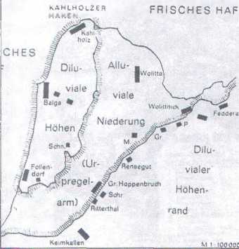 После тяжелой зимы весной 1238 г. из Эльбинга в залив Фришес Хафф с разведывательной целью вышли два снаряжённых военных корабля — "Пилигрим" и "Фридланд". На кораблях отправился отряд прибывших по весне пилигримов-крестоносцев и орденских рыцарей. Продвигаясь вдоль берега на север, они обнаружили на полуострове, на крутом береговом откосе, прусскую крепость. Старая Хонеда располагалась над заливом на высоте 30 метров. Ранее это был остров, отделённый мелким проливом от материка. Постепенно пролив зарос камышом и превратился в болото с рядом озёр. От материка до острова можно было добраться только по гати. Крепость представляла собой вальное укрепление с деревянным палисадом и глубоким рвом, она контролировала залив и выход из него в море (пролив), который в те времена располагался напротив полуострова.
