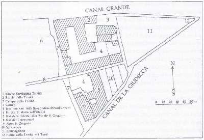 Ещё в период крупных войн Венеции с Генуей Тевтонский орден всегда выступал на стороне города на островах. Рыцари ордена рассматривались как особые друзья республики. В середине века дож Венеции Ренье Цено (Renuer Zeno) в качестве благодарности рыцарям велел построить в городе церковь Св. Троицы, передав её ордену, к тому же отписал им значительные доходы.