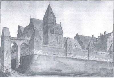 Ворота во двор здания конвента находились в северном флигеле. С западной стороны над крепостным рвом, по которому протекал ручей, стояла башня данцкера, куда можно было попасть через сводчатый проход от юго-западного угла крытой галереи дома конвента.