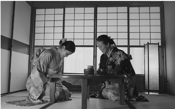Мебель в традиционном японском жилище крайне скудна, даже шкафы, в которых хранятся спальные принадлежности, одежда и домашняя утварь, встроены в стены. Собственно, главные, а зачастую единственные предметы меблировки – низенькие столики, на которых обедают, пьют чай (о мистическом значении чайной церемонии мы поговорим далее), играют в го – дальневосточную разновидность шашек и так далее.