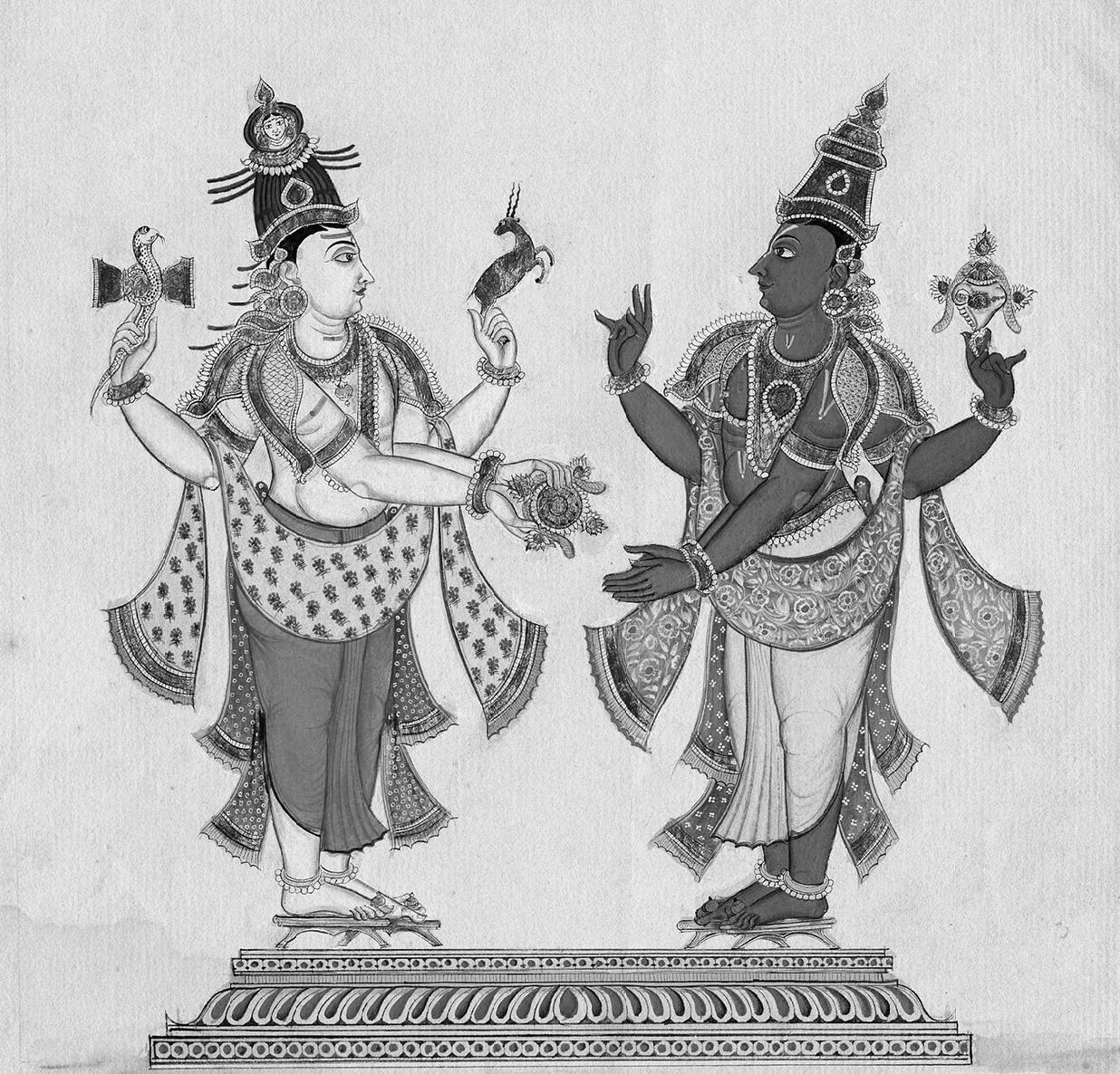 Шива вручает чакру Вишну. Индийская миниатюра из коллекции Британского музея. 1820-е гг.