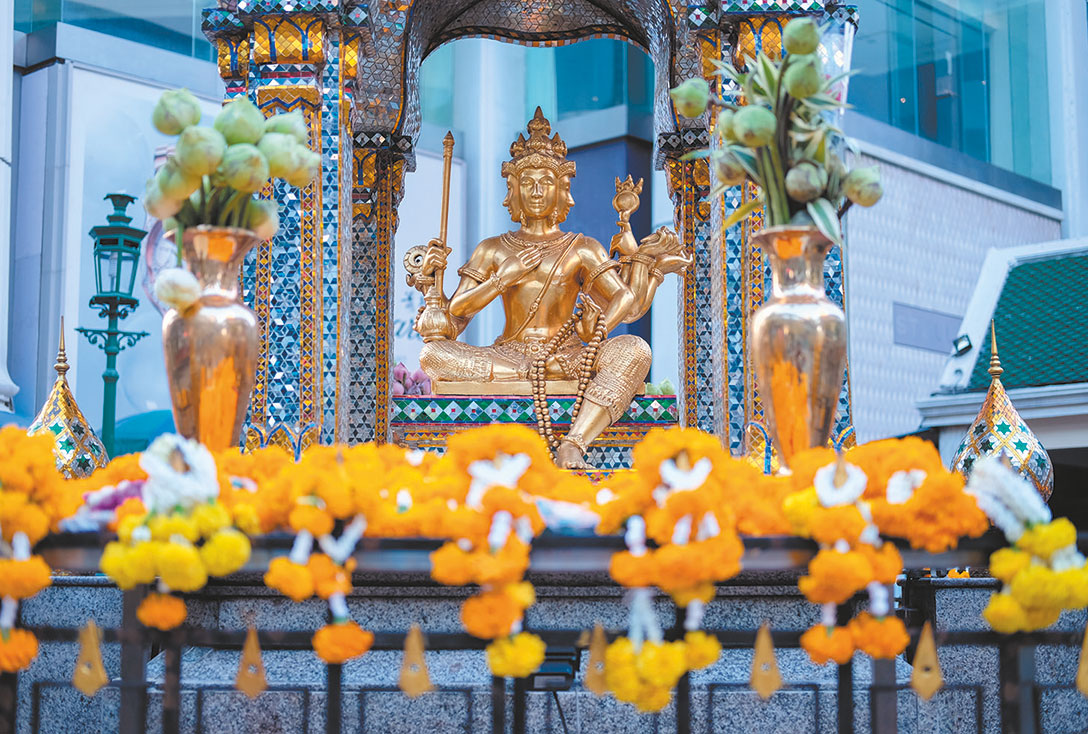 Скульптурное изображение Брахмы в храме Эраван, Бангкок, Таиланд