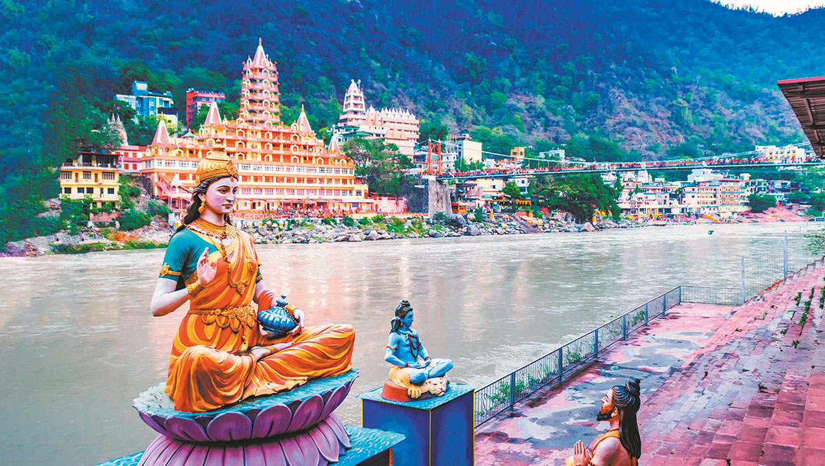 Статуи Вишну и Лакшми на берегу реки Ганга в Ришикеше, штат Уттаракханд, Индия