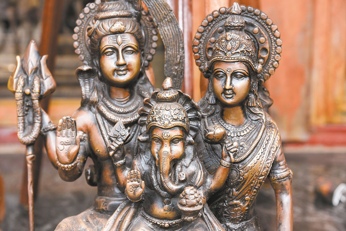 Бронзовая скульптурная группа: Шива, его супруга Парвати и их сын Ганеша. Подобные группы устанавливают как в храмах, так и в жилищах, считается, что они покровительствуют семье