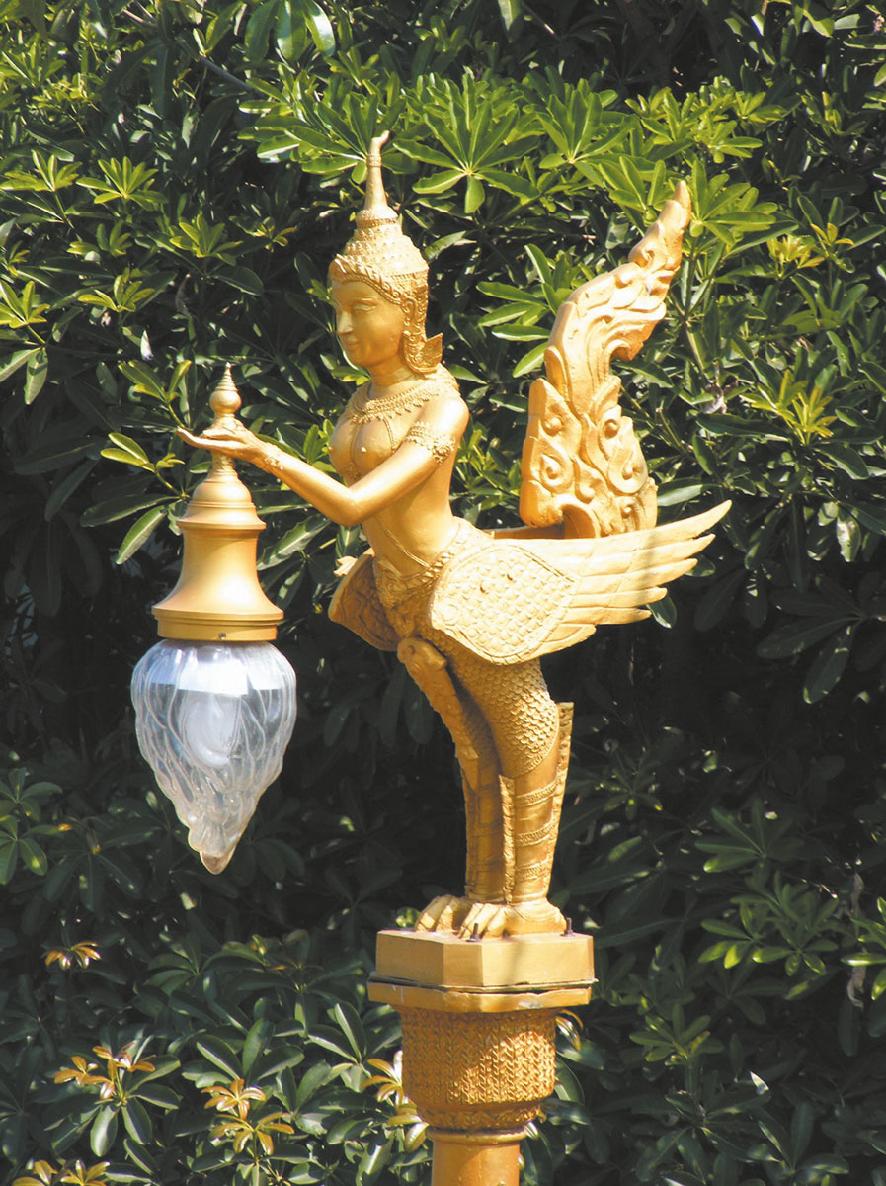 Скульптура киннари – божественной музыкантши и танцовщицы с головой женщины и телом птицы в одном из парков Таиланда