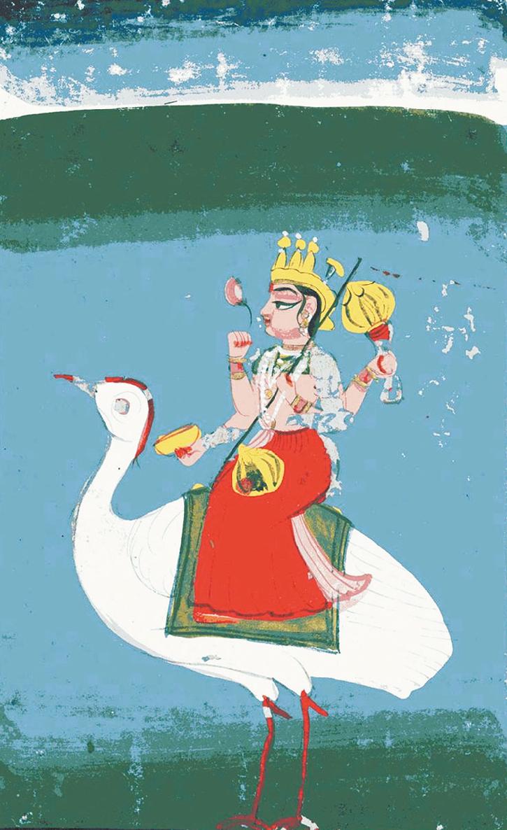 Божественная супруга Брахмы Сарасвати на одной из своих вахан – лебеде