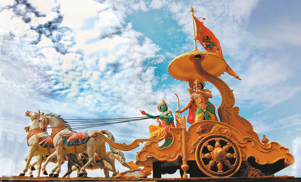 Арджуна и его колесничий Кришна. Ришикеш, штат Уттаракханд, Индия. Похожие статуи есть по всей Индии и за ее пределами, там, где распространен индуизм