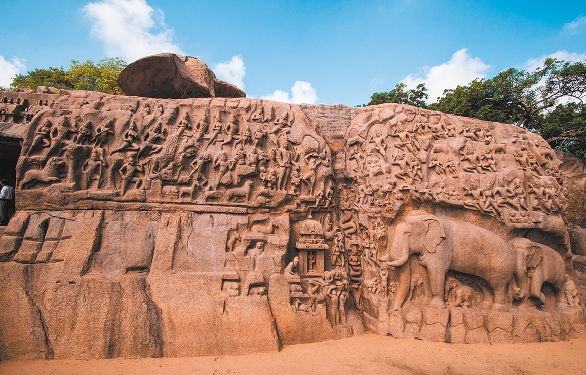 Барельеф, изображающий покаяние Арджуны. Махабалипурам, штат Тамилнад, Индия