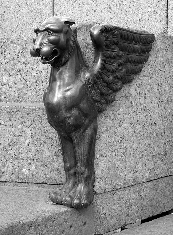 На Университетской набережной Санкт-Петер-бурга есть интересные скульптуры – две маленькие бронзовые фигурки животных, но животных необычных. Их туловища напоминают львиные, однако за спинами развеваются орлиные крылья. Это грифоны, удивительные мифологические существа, история которых насчитывает многие века. Они часто встречаются в архитектуре Петербурга – и не только его, но и других городов в самых разных странах.
