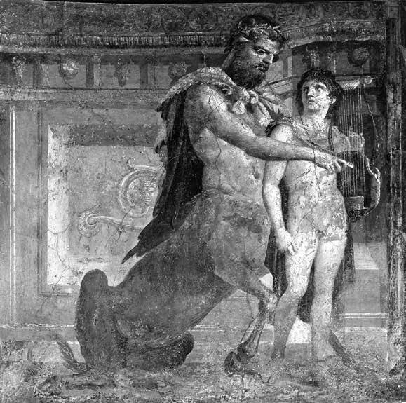 Хирон учит Ахилла играть на лире. Фреска. I в . н. э. Национальный археологический музей. Неаполь, Италия