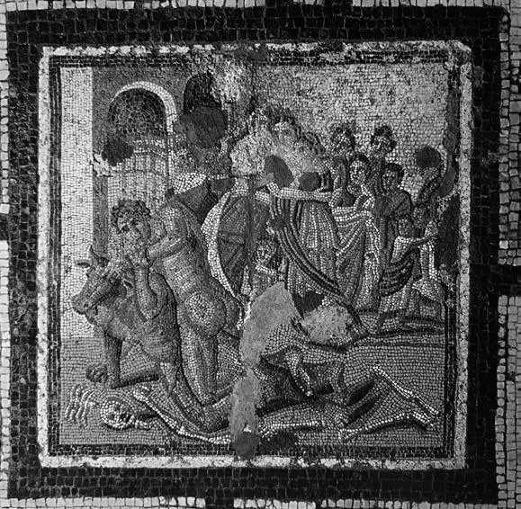 Тесей, сражающийся с Минотавром. I в. н. э. Дом Лабиринта. Помпеи, Италия