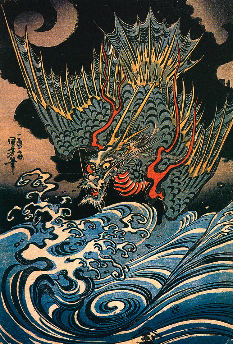 Утагава Куниёси. Дракон, летящий над бурными волнами. 1831 г.