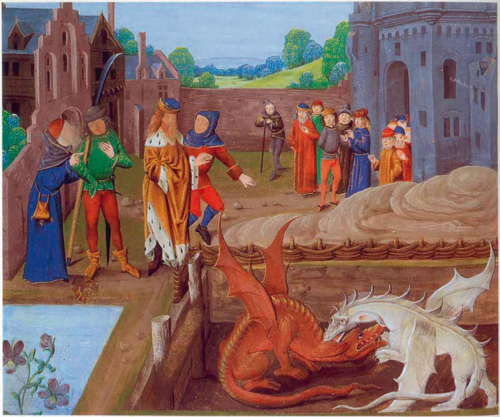 Мастер Эдуарда IV. Битва драконов. Иллюстрация из рукописи «Истории королей Британии». XV в.