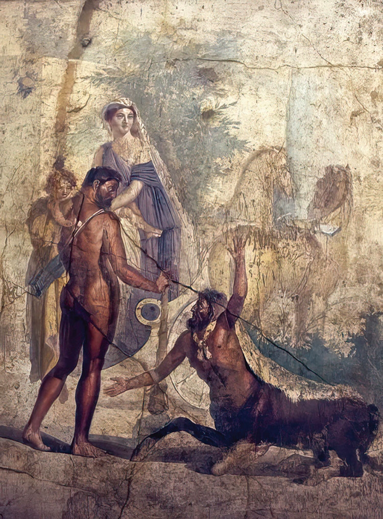 Геркулес, Деянира и кентавр Несс, умоляющий о пощаде. Фреска. I в. н. э. Национальный археологический музей. Неаполь, Италия