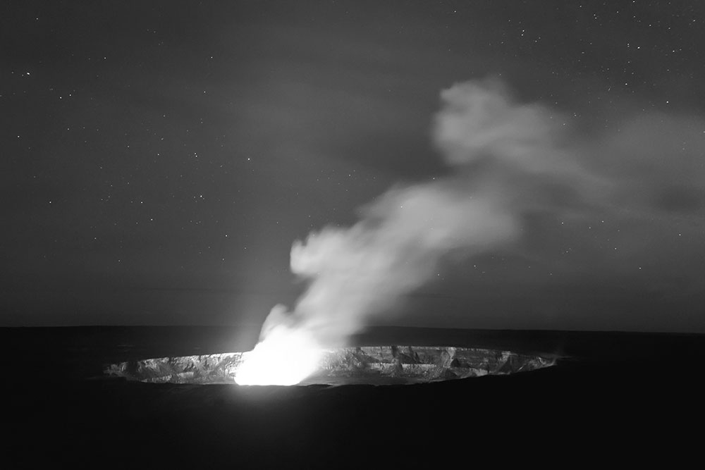 Лава, горящая в кратере Халемаумау. Национальный парк Гавайских вулканов, Гавайи
