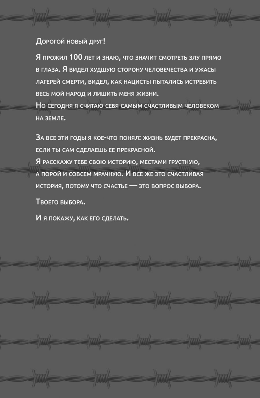 Я прожил целый век и знаю, что значит смотреть злу прямо в глаза. Я видел худшие стороны человечества и ужасы лагерей смерти. Видел, как нацисты пытались уничтожить мою жизнь и истребить весь мой народ.