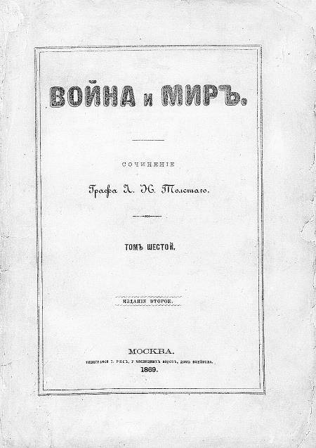 Л.Н. Толстой. Титульный лист 6-го томаромана «Войнаимир. 1869