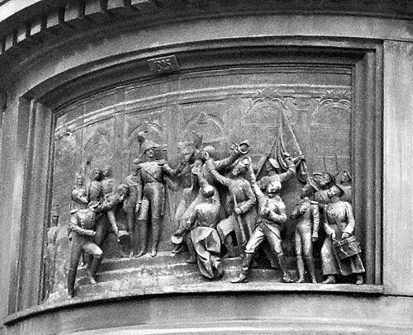 Барельеф памятника Николаю I архитектора Огюста Монферрана, изображающий восстание декабристов. 1859