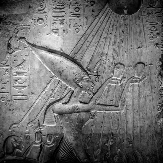 На изображениях того периода можно видеть правителя со всем семейством, которые благоговейно поднимают руки навстречу восходящему солнечному диску, а солнце-бог как будто бы нежно гладит их всех своими ладошками.
