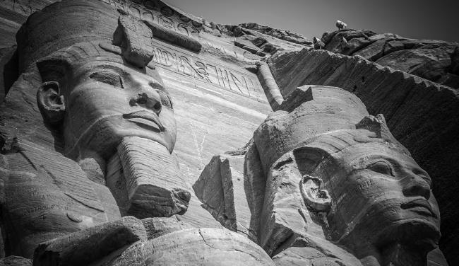 Головы скульптур у входа в скальный храм Абу-Симбел. Современное фото