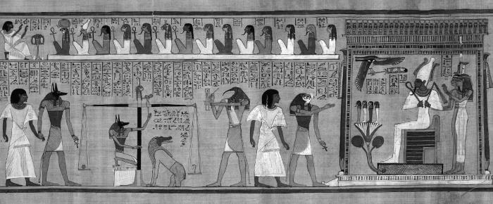 Фрагмент «Книги мертвых» с изображением суда Осириса. XIV в. до н. э.