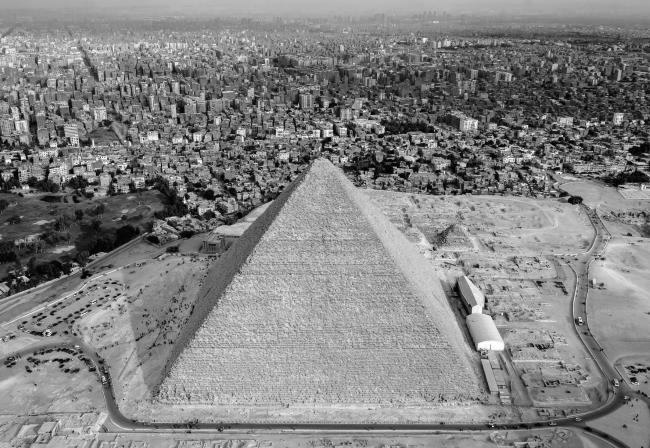 Вид на пирамиду Хуфу с высоты птичьего полета. Современное фото