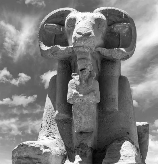 Сфинкс с бараньей головой у храма в Карнаке. Современное фото