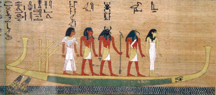 Изображение ладьи Ра на папирусе. Фрагмент «Книги мертвых». XIV в. до н. э.